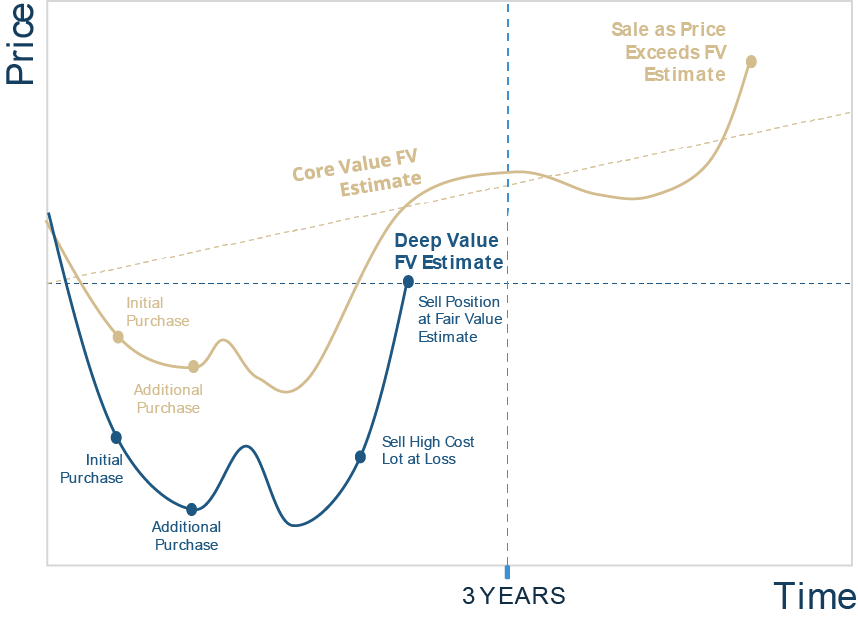Deep Value names are sold at fair value estimates. Core Value holdings are sold based on valuation alone only when we believe they are significantly stretched.
